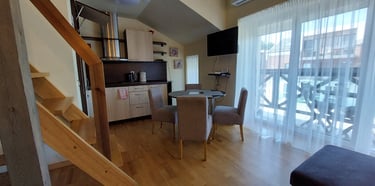 Esantys vos 100 metrų nuo Kuršių marių ir 1,3 km nuo jūros einant takeliu per mišką. Komplekse įrengta SPA*: turkiška pirtis, baseinas, jacuzzi.